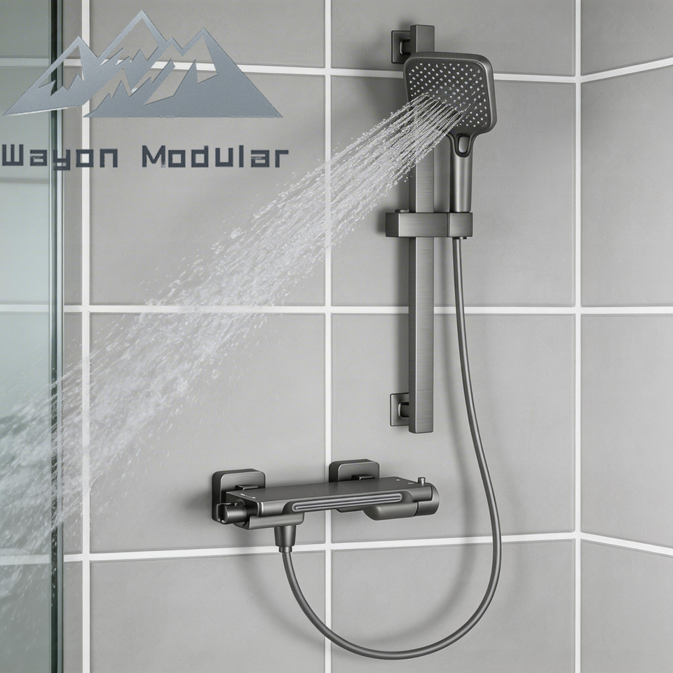 Sistema Doccia Termostatico a Cascata Wayon Moderno Grigio Canna di Fucile per Bagno Prefabbricato