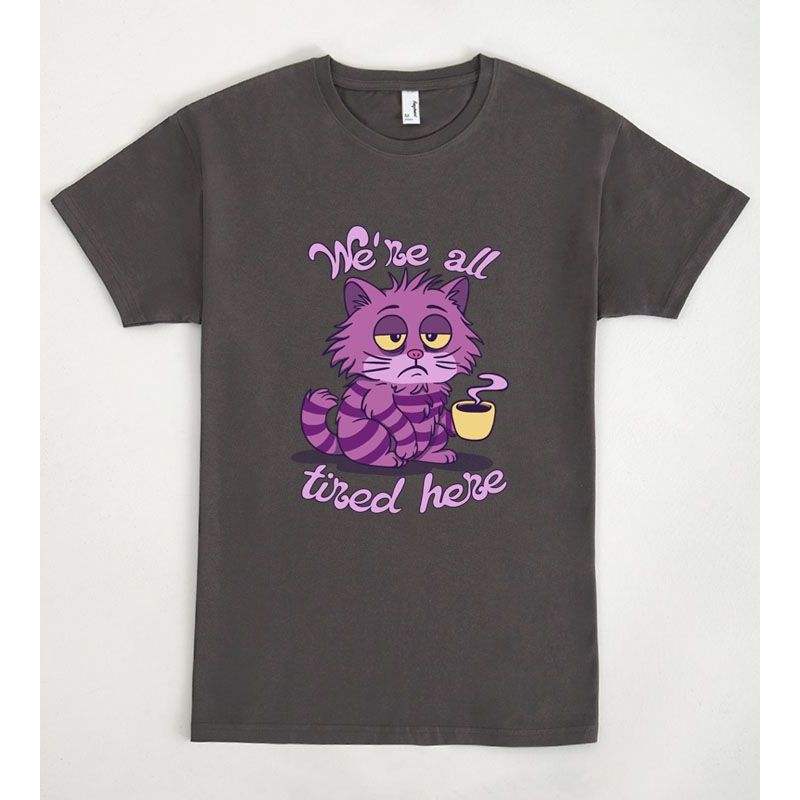 T-shirt con stampa grafica unisex per adulti We Are All Tired Here Purple Cat