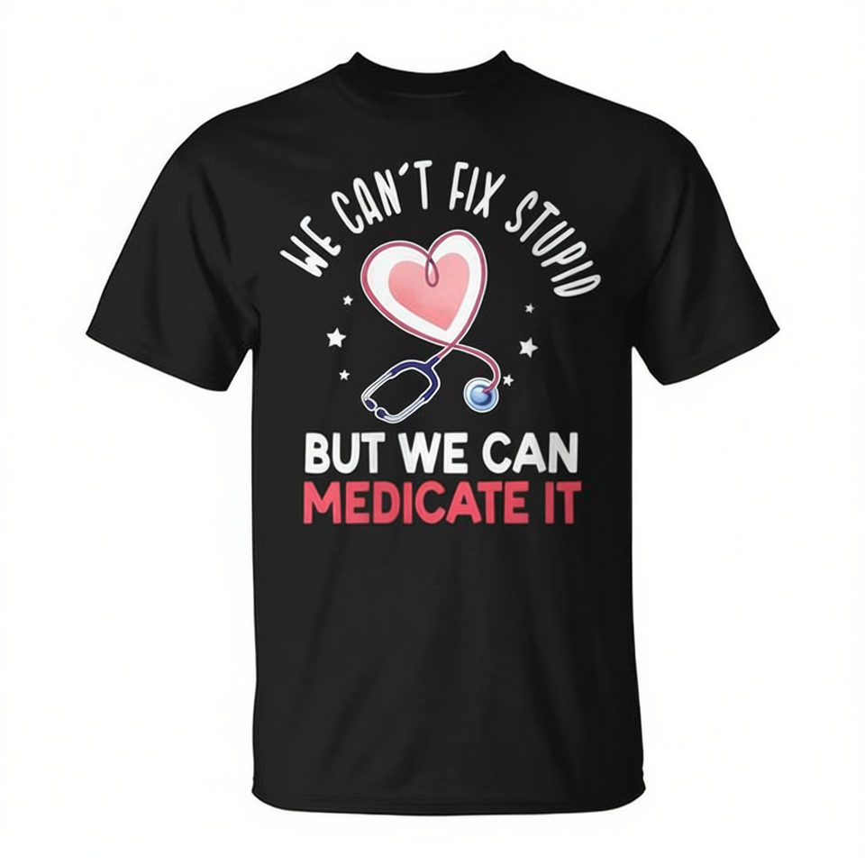 Non possiamo corrigerre la stupidità, ma possiamo farmi prescritti farmaci IT T-shirt da farmacista