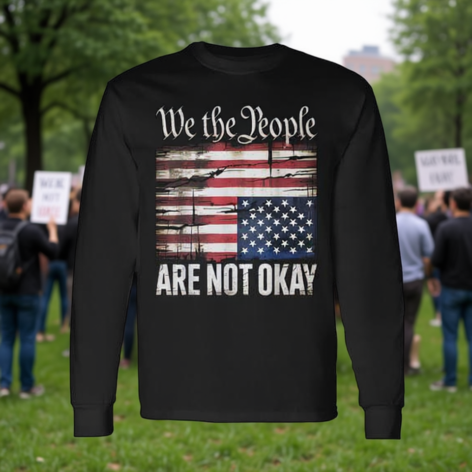T-shirt patriottica a maniche lunghe con bandiera americana invertita We the People Are Not Okay