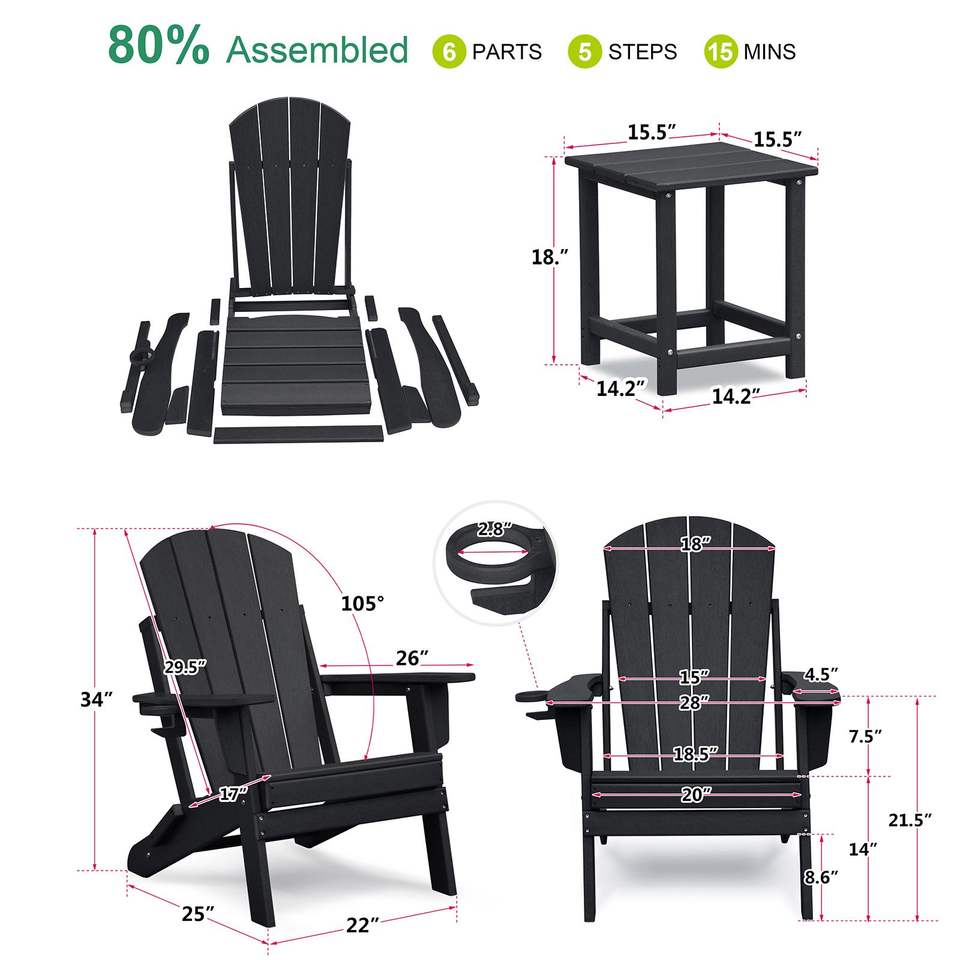 Sedia Adirondack Resistente alle Intemperie per Esterni, Sedia da Giardino Pieghevole in HDPE