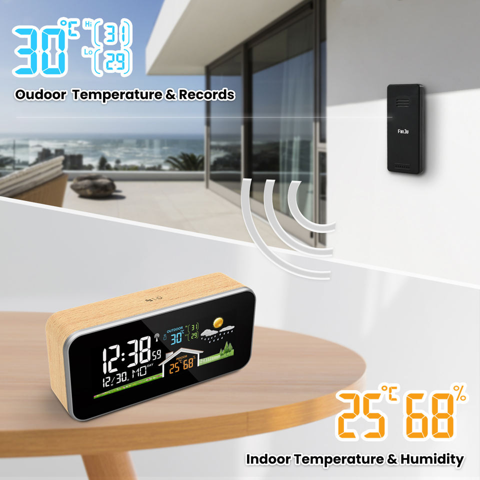 Stazione Meteo con Schermo VA, Termometro Digitale Interno/Esterno, Igrometro, Barometro, Orologio LED con Funzione Meteo