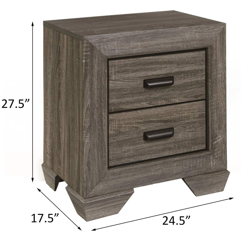 Comodino a 2 cassetti con venature grigide stagionate in stile rustico