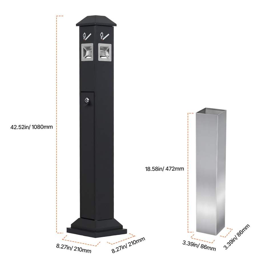Posacenere da esterno autoportante resistente alle intemperie con 4 aperture per lo smaltimento e coperchio superiore per uso esterno