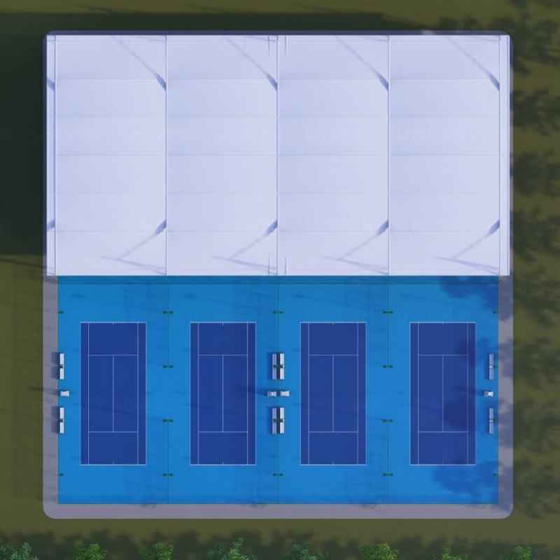 Weatherproof Panoramic Covered Padel Court with Steel Roof & Full Glass Panels for Outdoor Sports