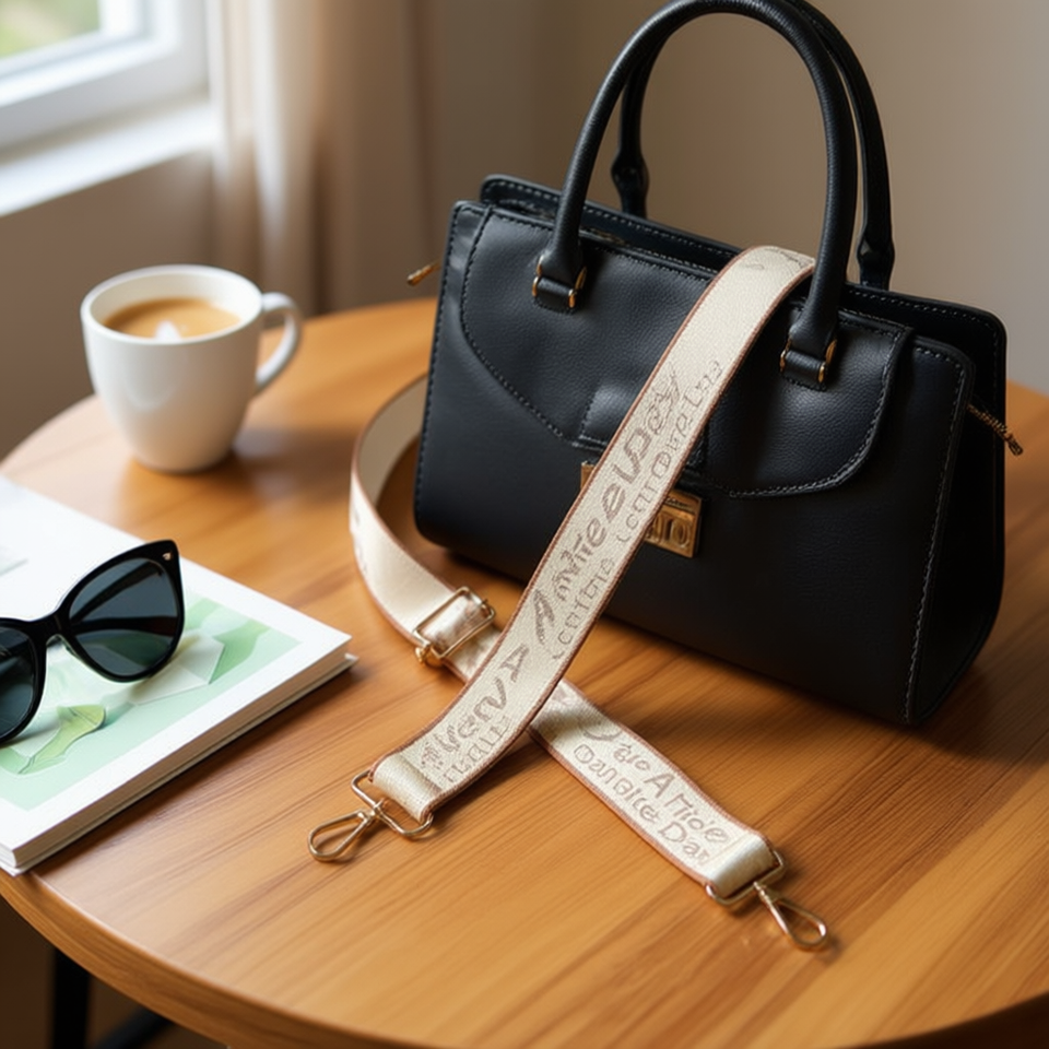 Cinghia in Tessuto 4Cm Beige con Scritta in Inglese per Borse