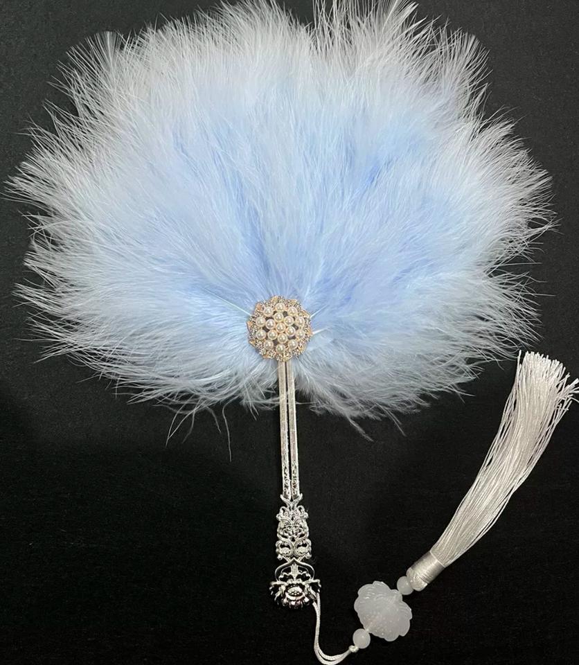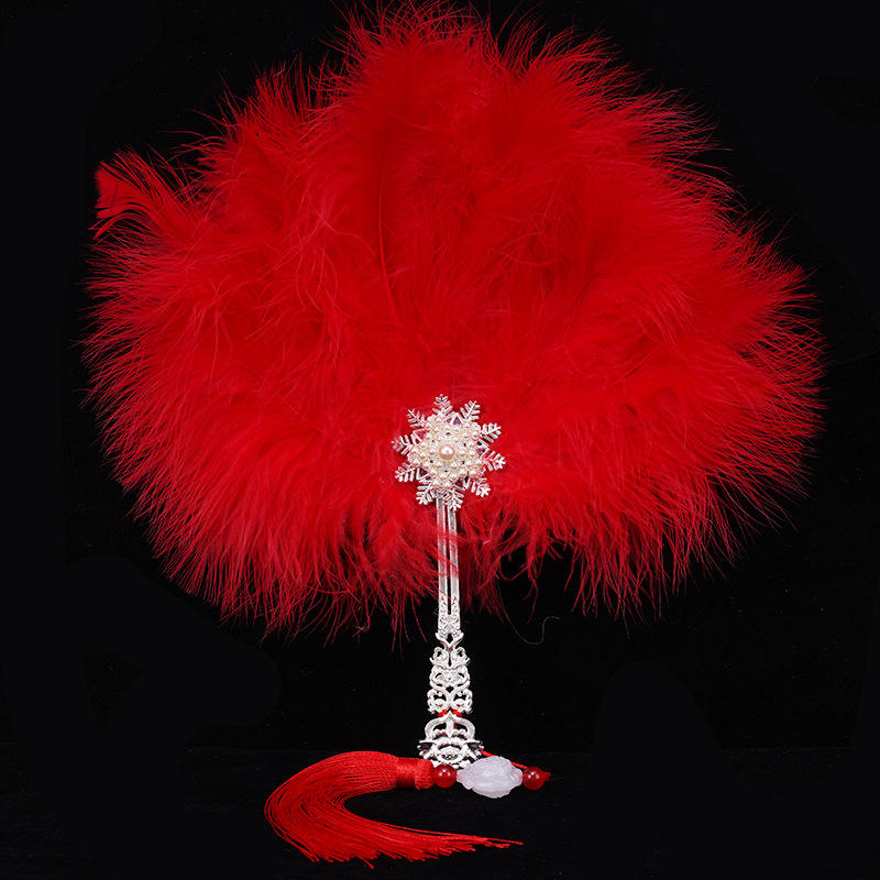 Ventaglio Rotondo in Piume di Struzzo Tinte da 70 cm per Sposa, Accessorio Fotografico per Servizi Nuziali, Ventaglio Tradizionale Portatile per Soggettivi di Matrimonio