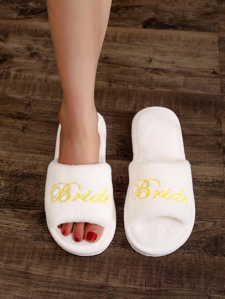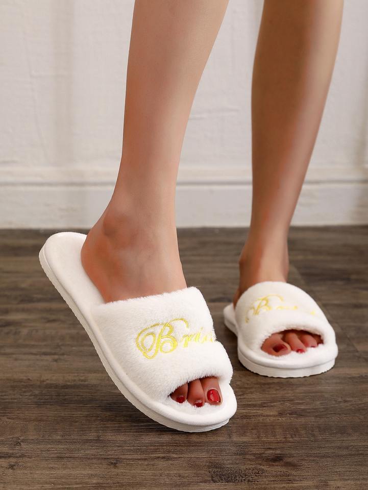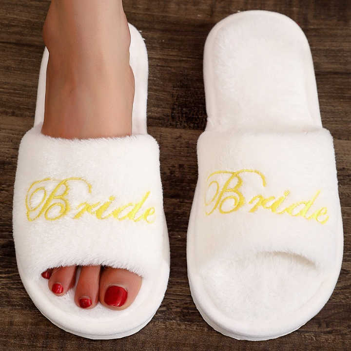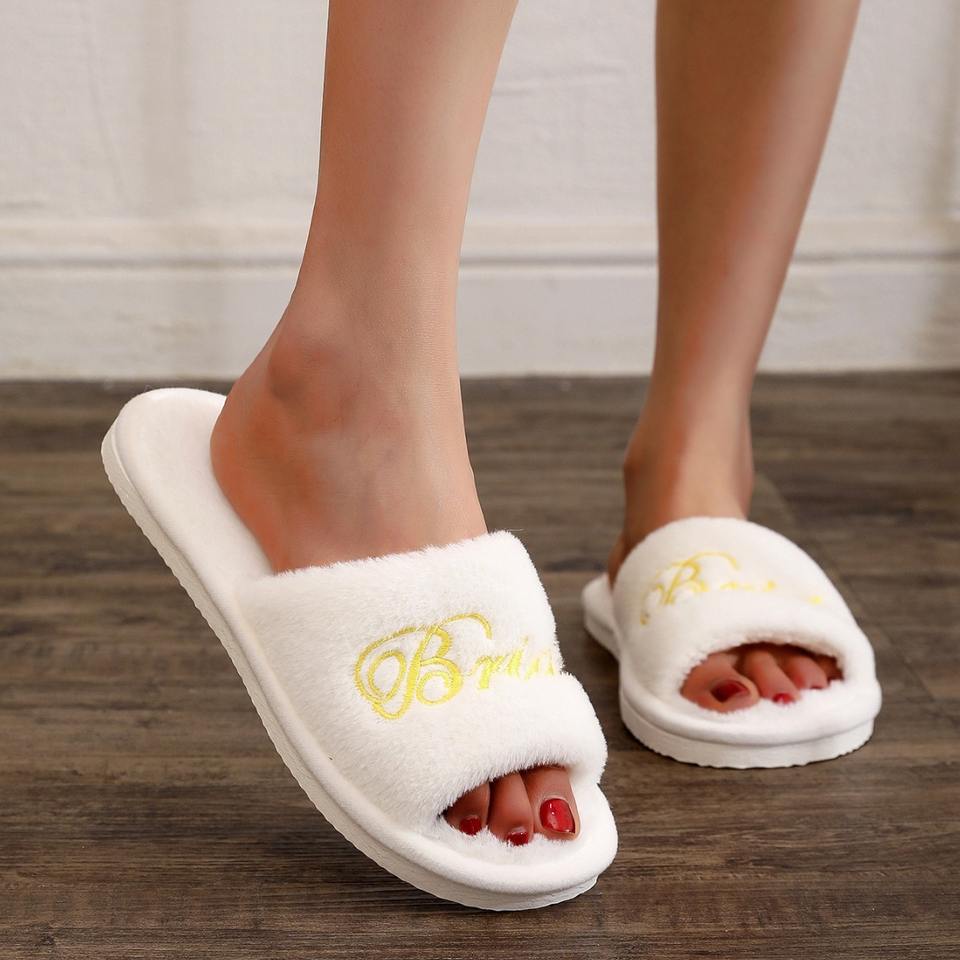 Scarpe da Sposa Personalizzate, Ciabatte Ricamate per Damigelle, Stampa Oro e Argento, Colore Personalizzato, Pantofole Calde in Pelliccia
