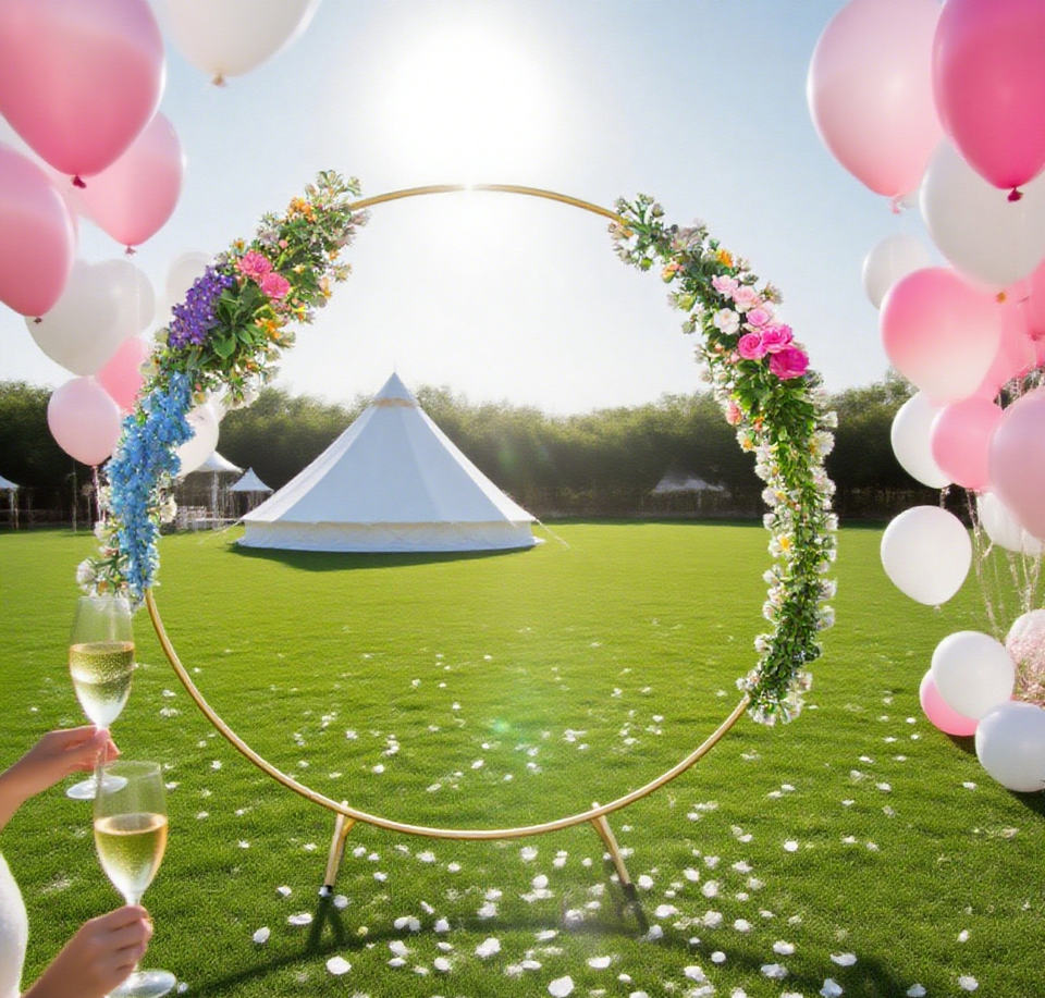 Decorazione per matrimonio sfondo ad arco con supporto per sfondo a forma rotonda da 5/6,6 piedi supporto per matrimonio in metallo per arco a palloncino in ferro