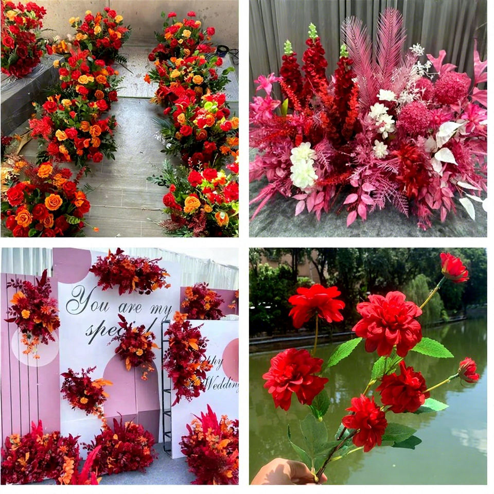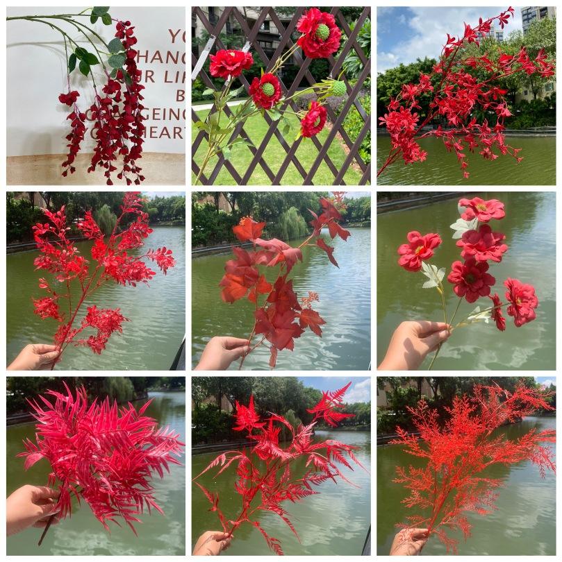 Wedding Decorations [Bright Red Series] Artificial Flowers Bouquets and Ceiling Decor with Rose Lily Tulip Phalaenopsis