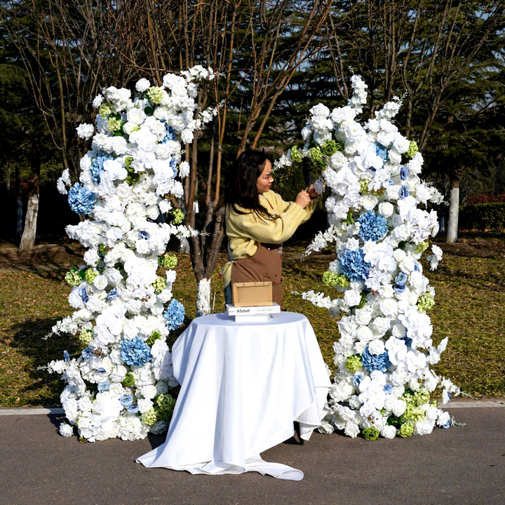 Wedding Flower Arch Decoration Low Price Wholesale Rose and Hydrangea Flower Arch Blue and White for Wedding Arch Decoration