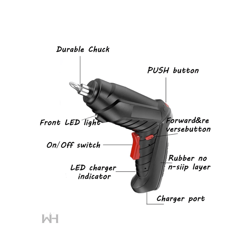 Wei Hang 4.2V Rechargeable Cordless Drill Driver 24-Piece Accessory Set 30 Nm Torque 15000 RPM Variable Speed Keyless C Drilling