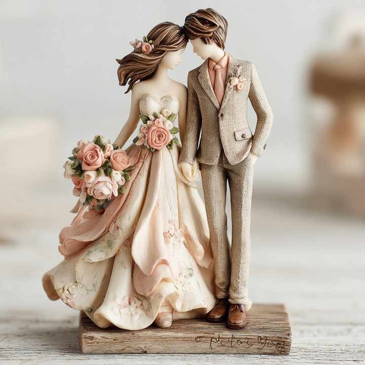 WeiVista Resin Wedding Couple Figurine Romantic Bride and Groom Sculpture Custom Keepsake Gift for Desk or Shelf Display