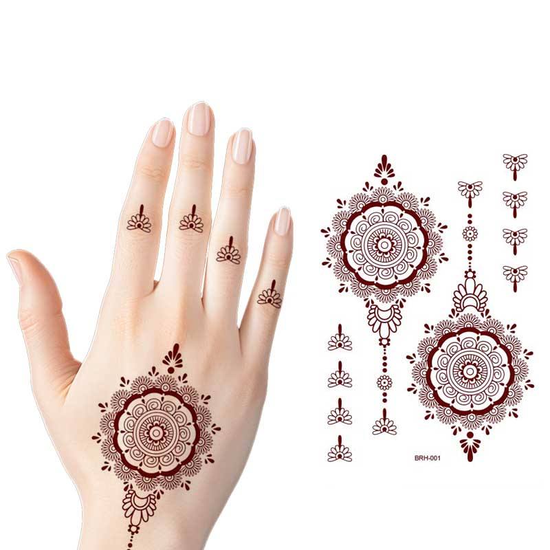 WeiXin Women's Brown Henna Lace Stencil Easy-to-Use Temporary Waterproof Hand Tattoo Sticker for Hands Henna Tattoo