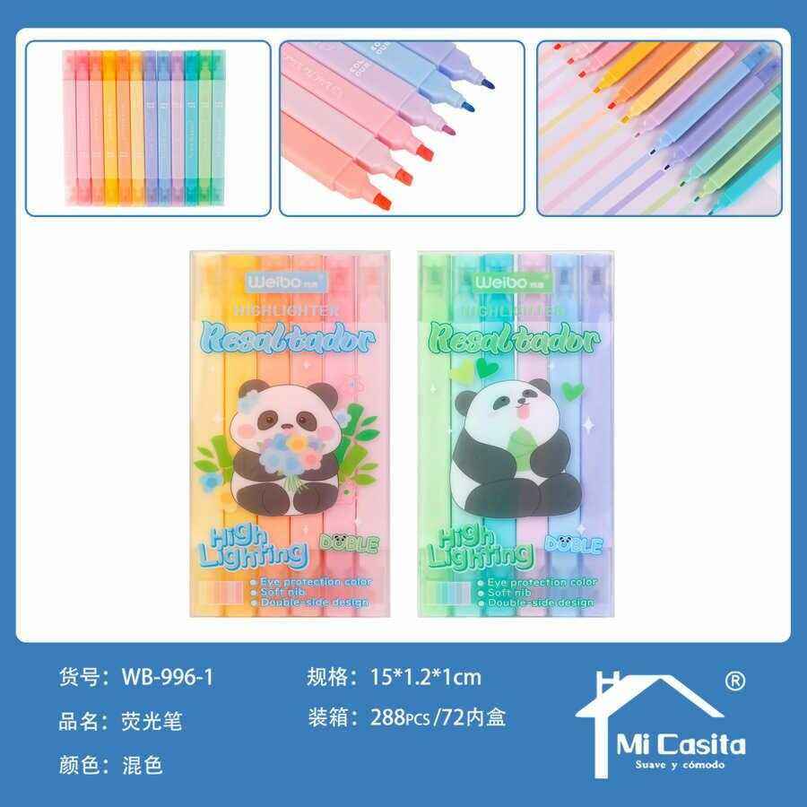 Evidenziatore Weibo Panda 12 colori, punta morbida a doppia faccia, dimensioni normali, per uso scolastico e in ufficio