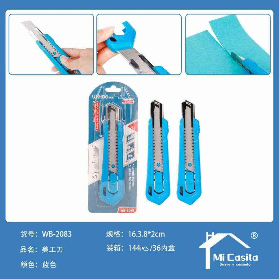Coltello multiuso Weibo WB-2083 con lame a spezzare blu in acciaio inossidabile, strumento da taglio per ufficio