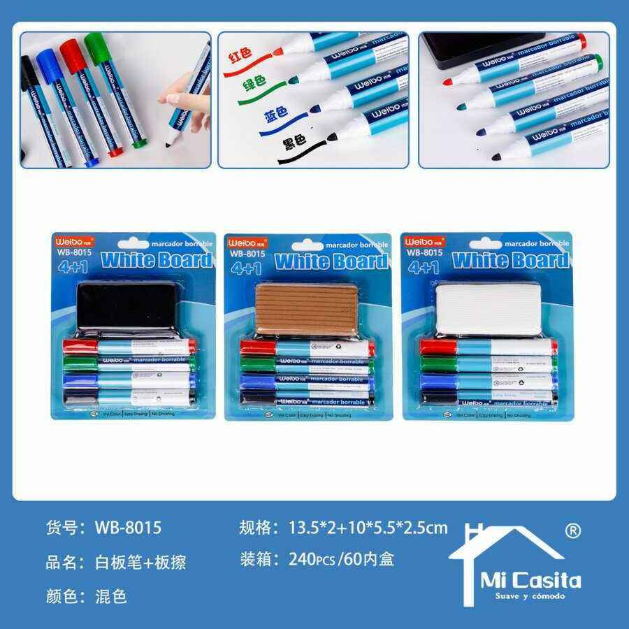Weibo Whiteboard Marker 4+1 Eraser Mixed Ink Color WB-8015 Repeated Filling School Office Use