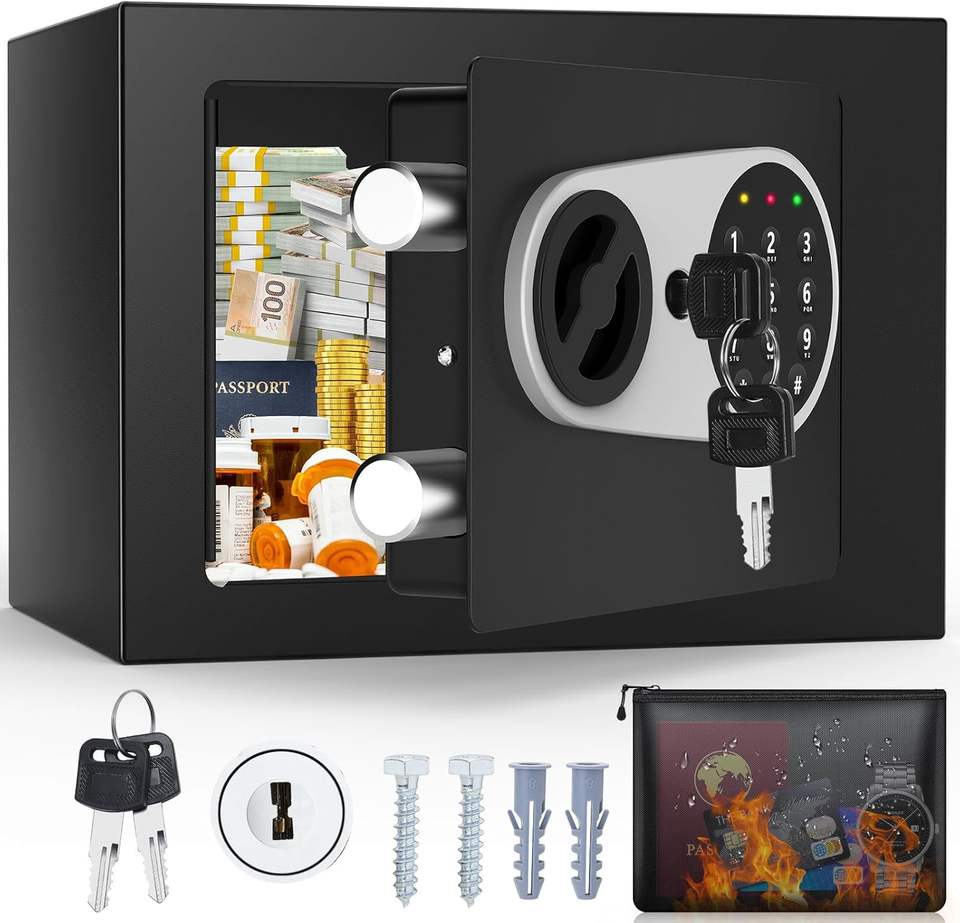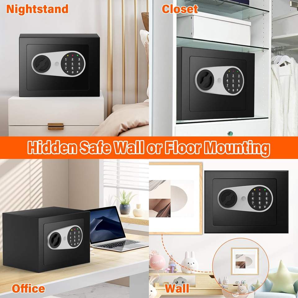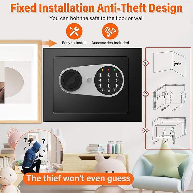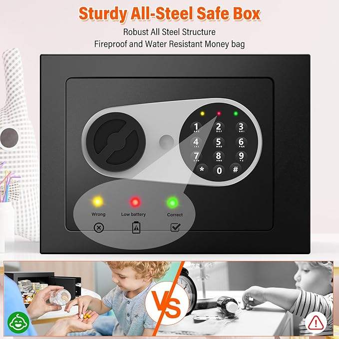 Cassaforte Domestica Weichi Completamente in Acciaio Nera con Serratura Elettronica per Uso Interno ed Esterno, Cassaforte Mini con Sistema di Allarme