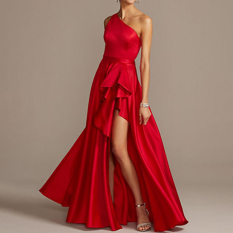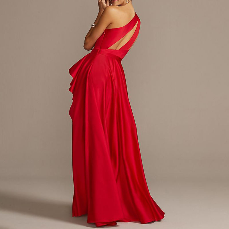 Weixin abiti da notte a cascata in raso asimmetrico monospalla da donna