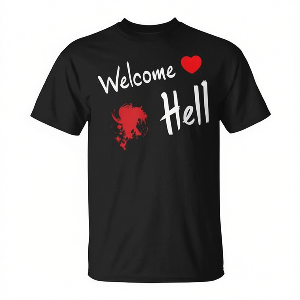 T-shirt nera piccola con stampa Welcome Hell Gensokyo Anime