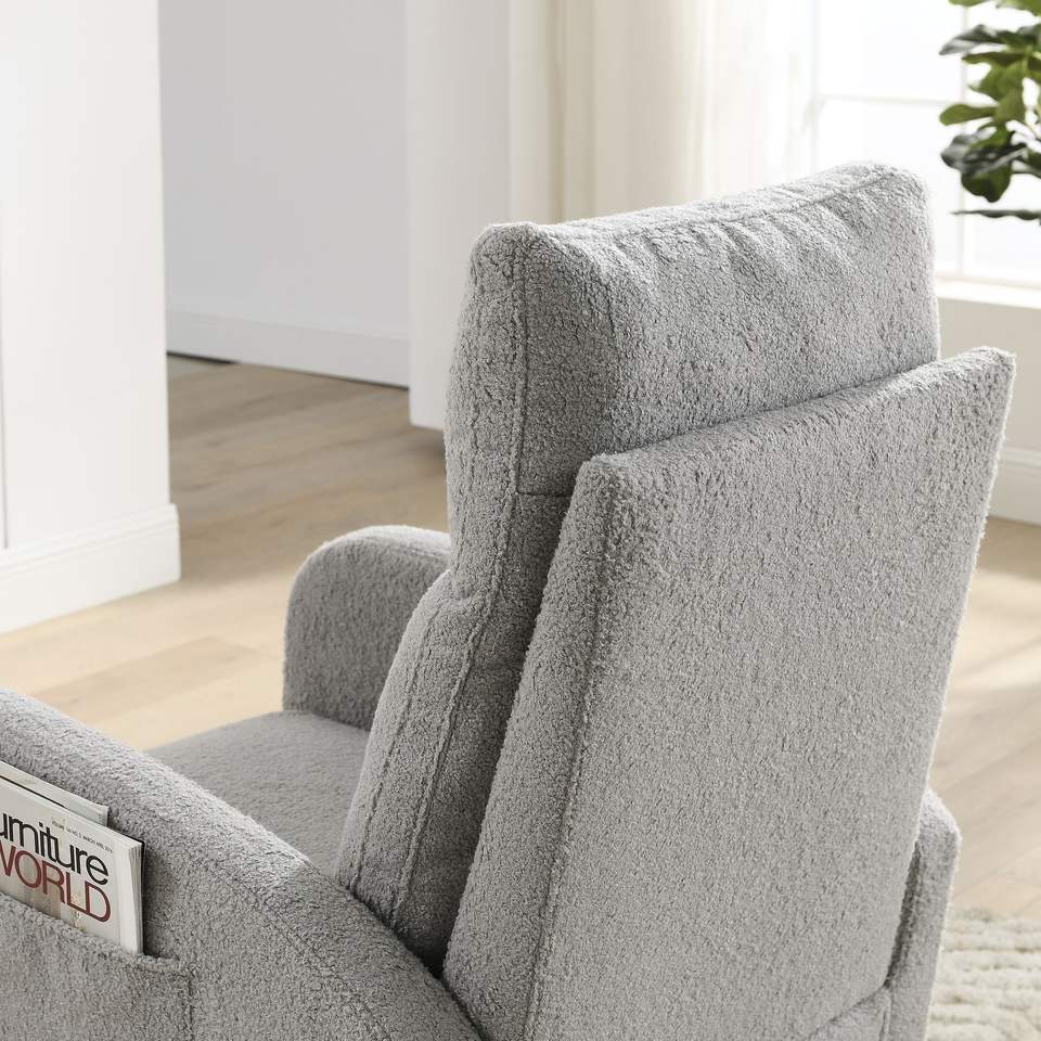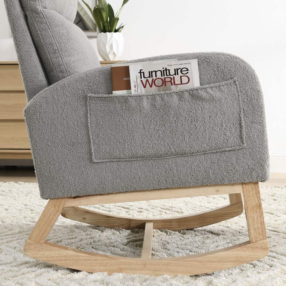 Poltrona lounge a dondolo moderna Welike da 70 cm con schienale alto e due tasche laterali per soggiorno W83453336