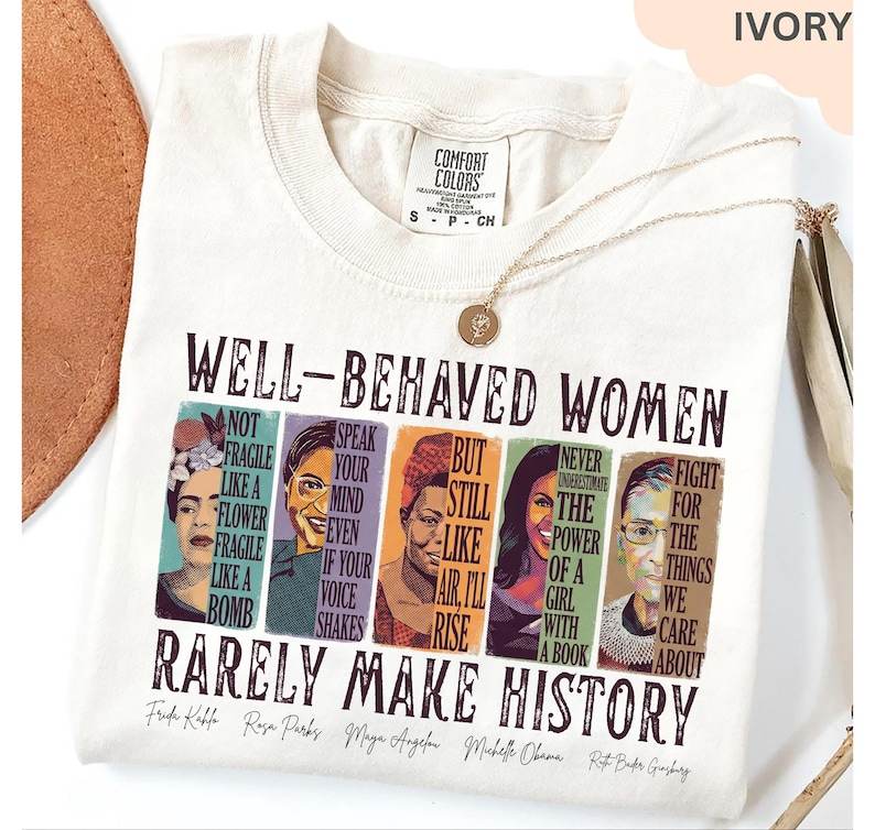 Well Behaved Women Rarely Make History Shirt Women's Short Sleeve Crew Neck Cotton Printed Feminist Tee Casual All Seasons