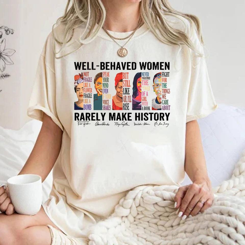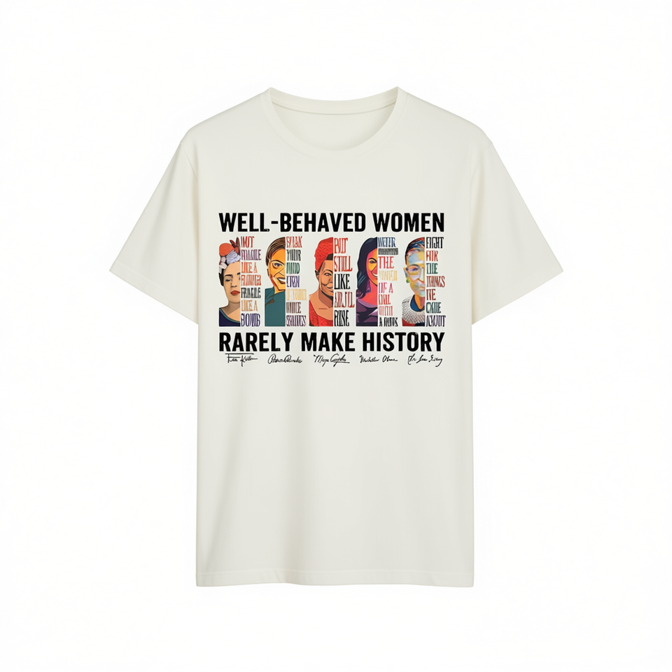 Maglietta da donna in cotone casual con stampa motivante, girocollo, manica corta, con la scritta: Donne ben comportate raramente fanno storia