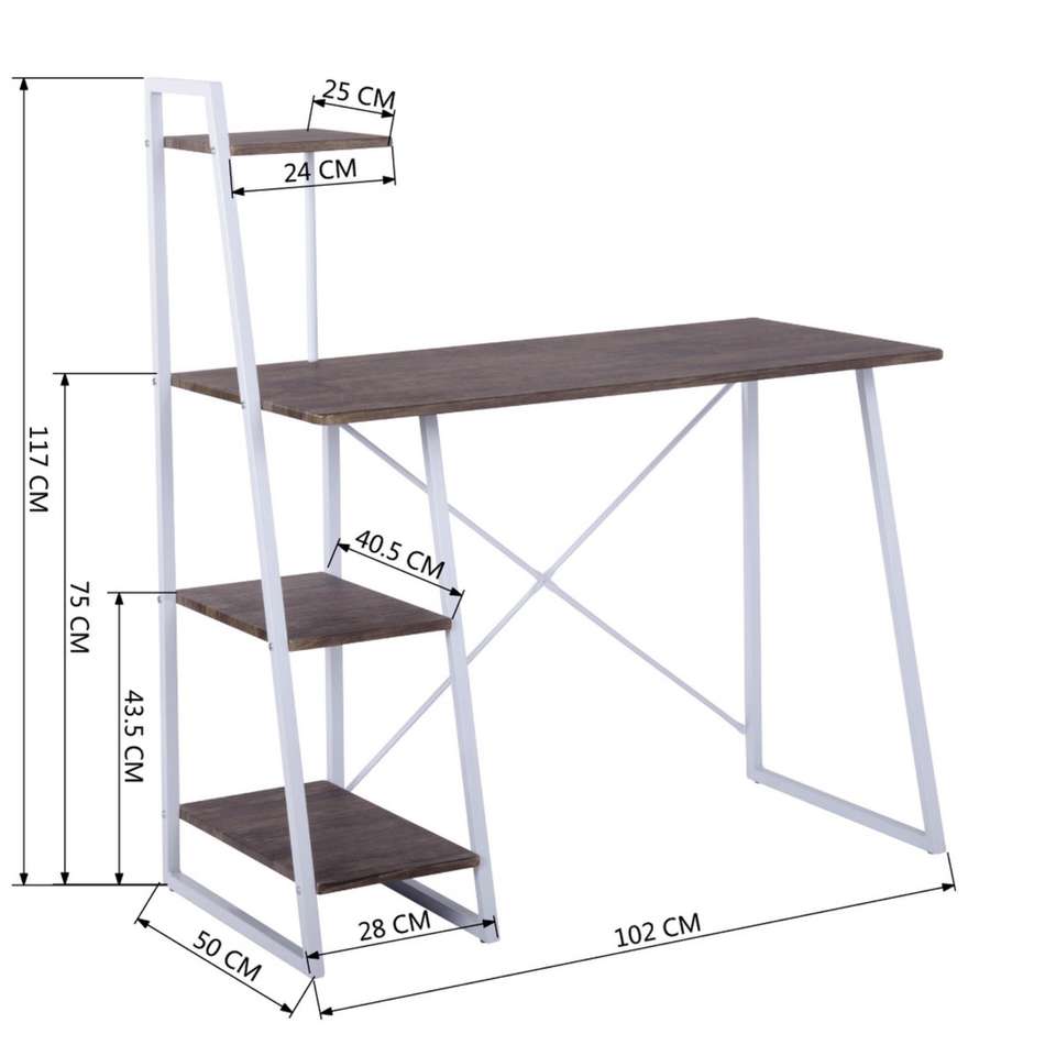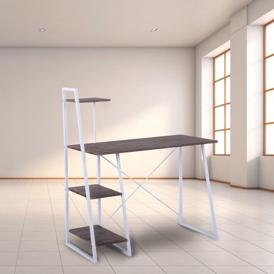 Well Home 102x50x75cm White and Walnut Brown Computer Desk with Integrated Bookshelf