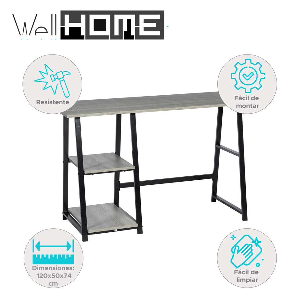 Scrivania per computer Well Home 120x50 cm 74 cm con struttura nera e piano grigio