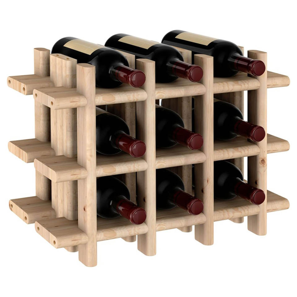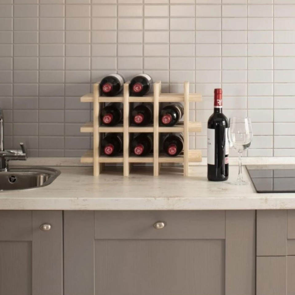 Portabottiglie Modulare in Legno per 9 Bottiglie Well Home 13.4x22x32.5cm Arredamento Casa
