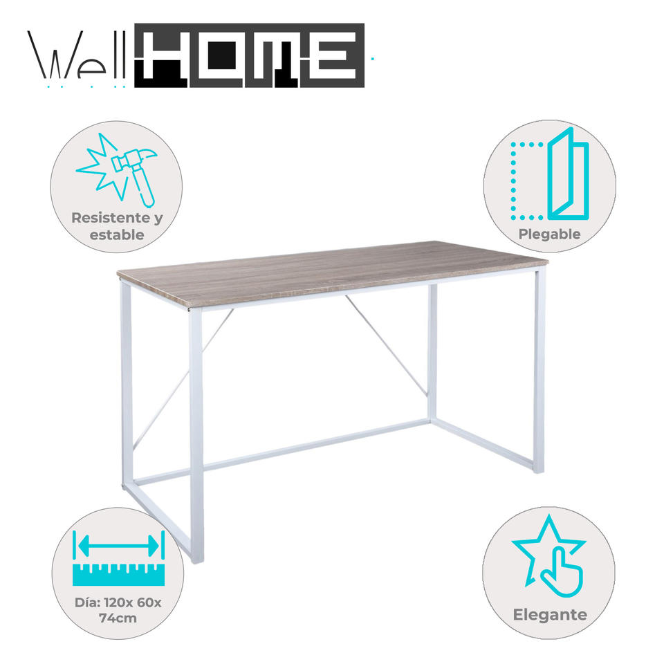 Tavolo da Pranzo Pieghevole 'Elmo' di Well Home in Legno di Faggio Bianco 120x60x74cm