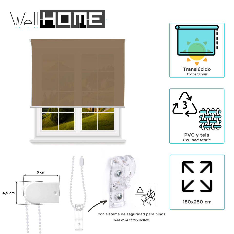 Tenda a Rullo Traslucida Semplice Well Home - Marrone Chiaro, 180 x 250 cm (larghezza x lunghezza)/Dimensioni tessuto 177 x 245 cm