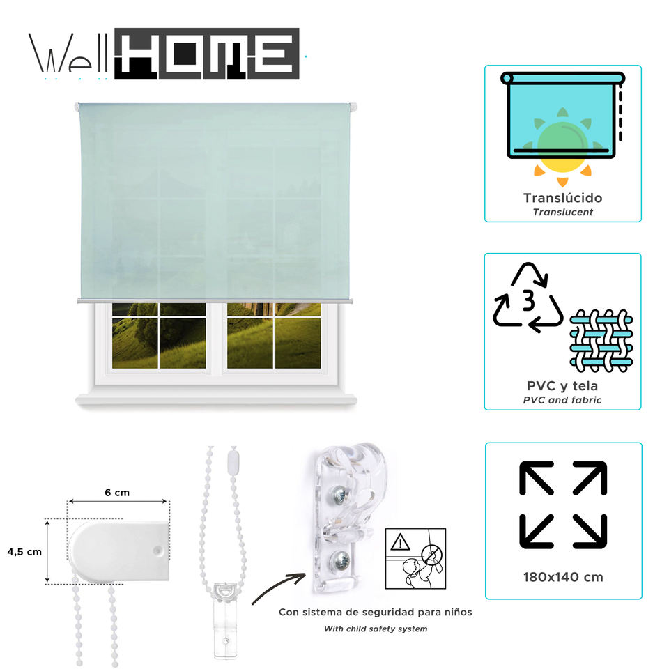 Tenda a Rullo Traslucida Well Home - Azzurro, 180 x 140 cm (larghezza x lunghezza)/Dimensioni tessuto 177 x 135 cm