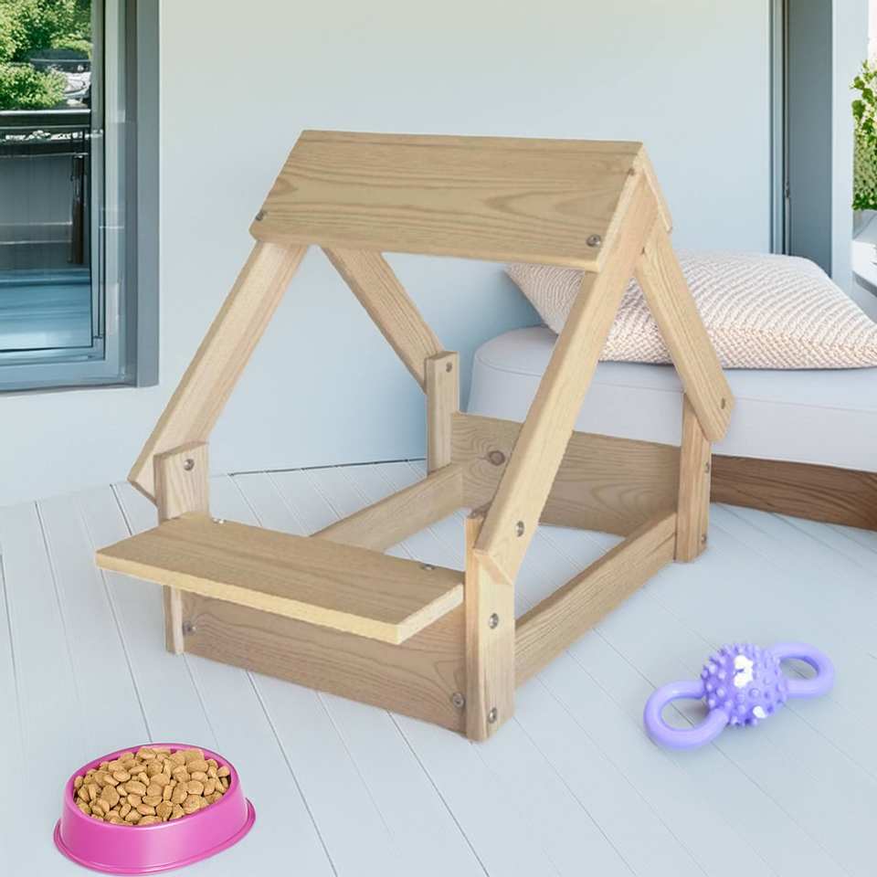Well Home Wooden Indoor Dog Kennel with Bowl Holder Wood Color Animal Cage