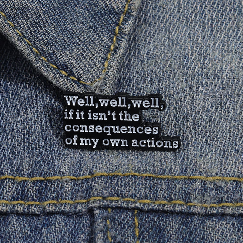 Beh, se non sono le conseguenze delle mie azioni, testo a breve frase con spilla smaltata alla moda accessori per abbigliamento regalo
