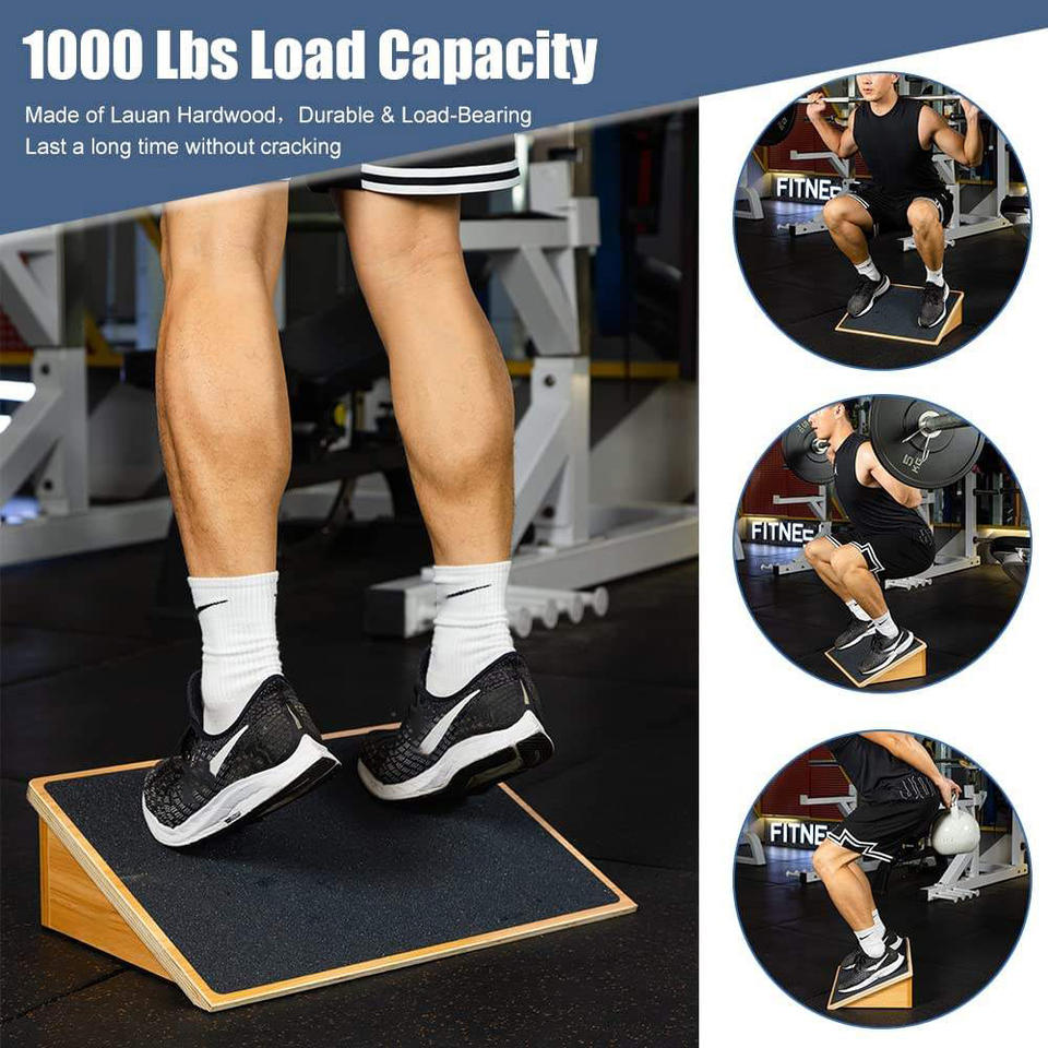 Wellshow Sport Heavy Duty Wooden Squat Wedge Anti-Slip Squat Wedge Block Wood Elevated Squat Wedge