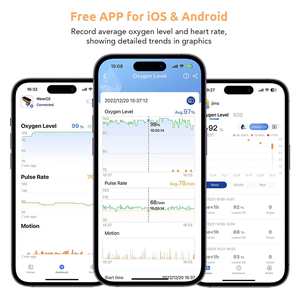 Parametri registrati:Livello di ossigeno, frequenza del polso, movimento, movimento