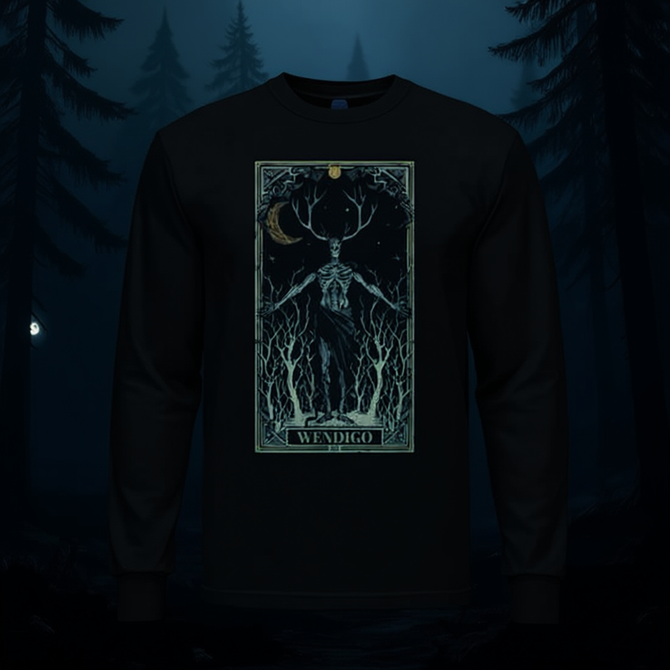 Maglietta promozionale a maniche lunghe con mostro legendario del cryptozoologo Wendygo, creatura criptide