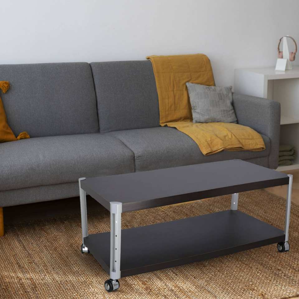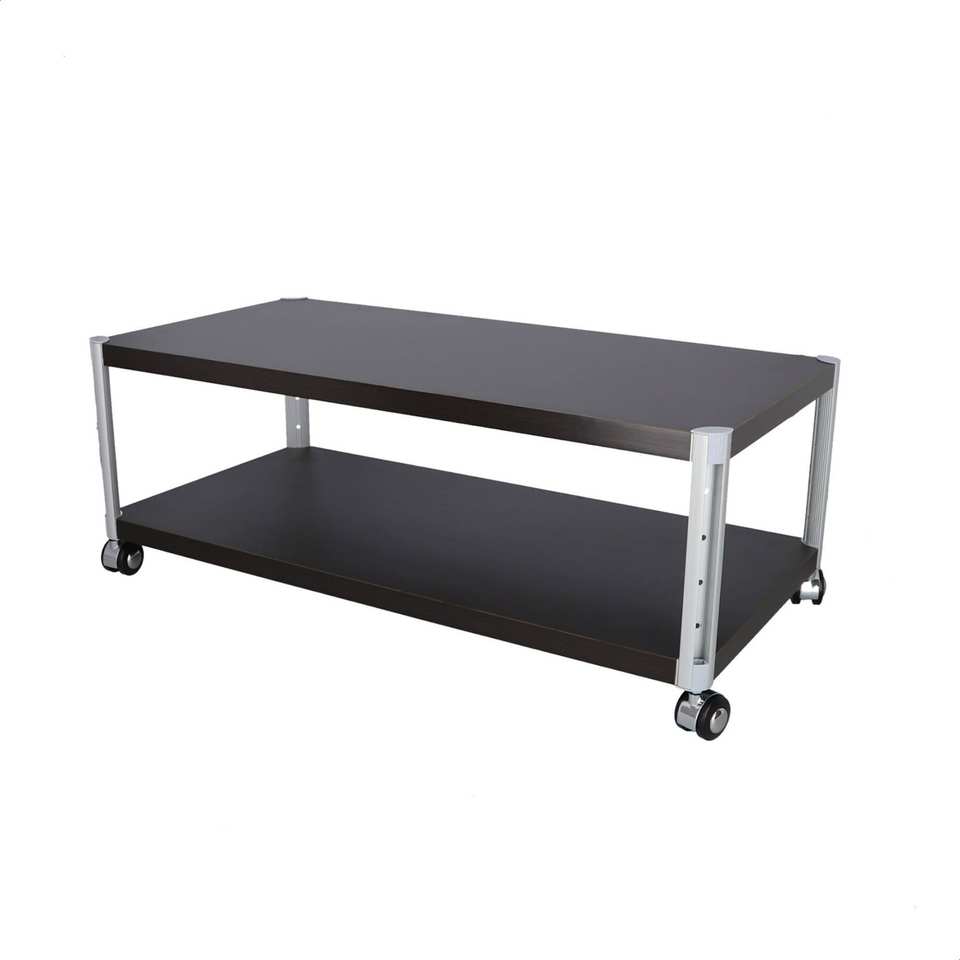 Tavolino da Caffè in Metallo con Ruote, Finitura Wenge, 90x45x30cm