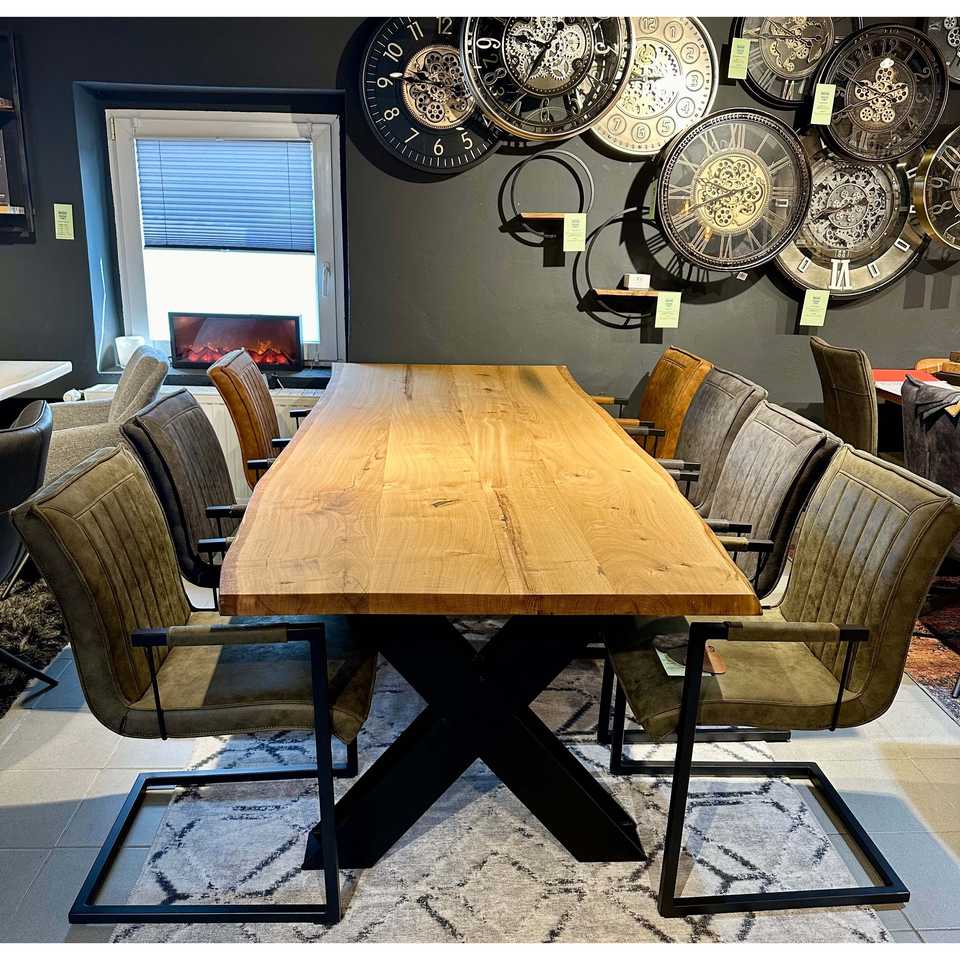Wesel Oak Oiled 260 cm Dining Table with 4-Plank Edge and X Frame Assembled and Extendable for Home Bar Made of Domestic Wood