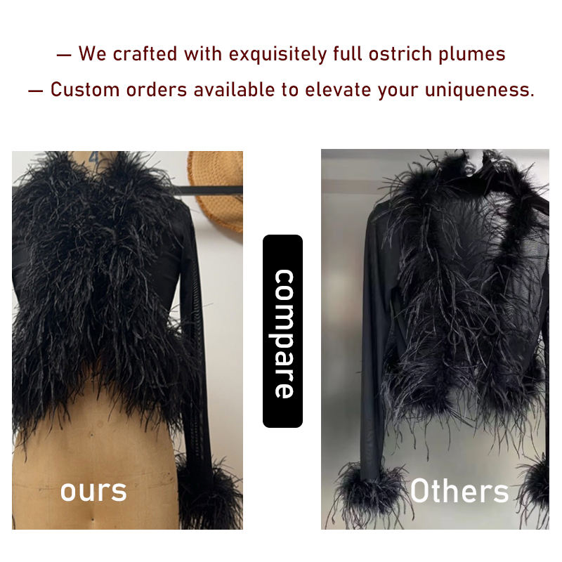 Weshallo Custom Luxury Breathable Mesh Fur Top Cropped Real Ostrich Feather Fur Coat for Women
