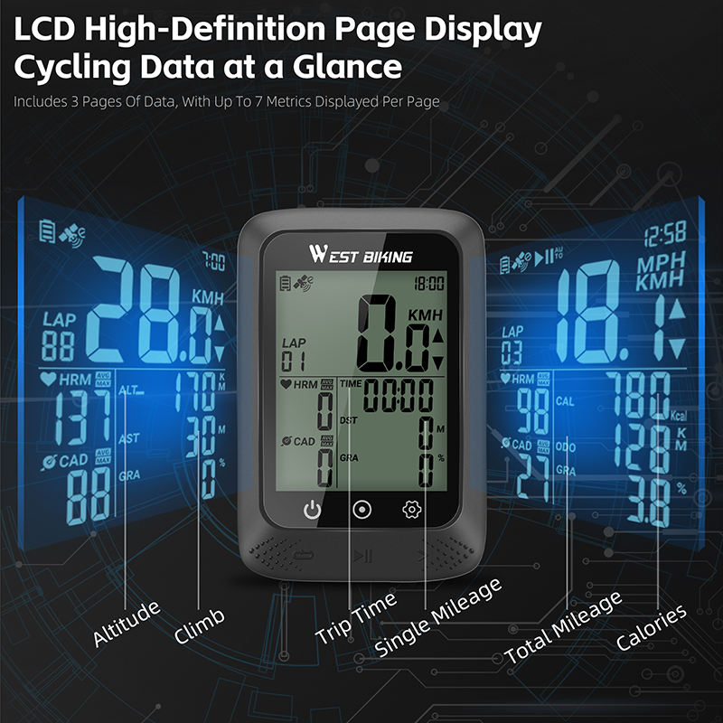 Computer da ciclismo GPS senza fili West Biking, velocimetro digitale per bici da strada, computer per bicicletta con frequenza cardiaca, per mountain bike.