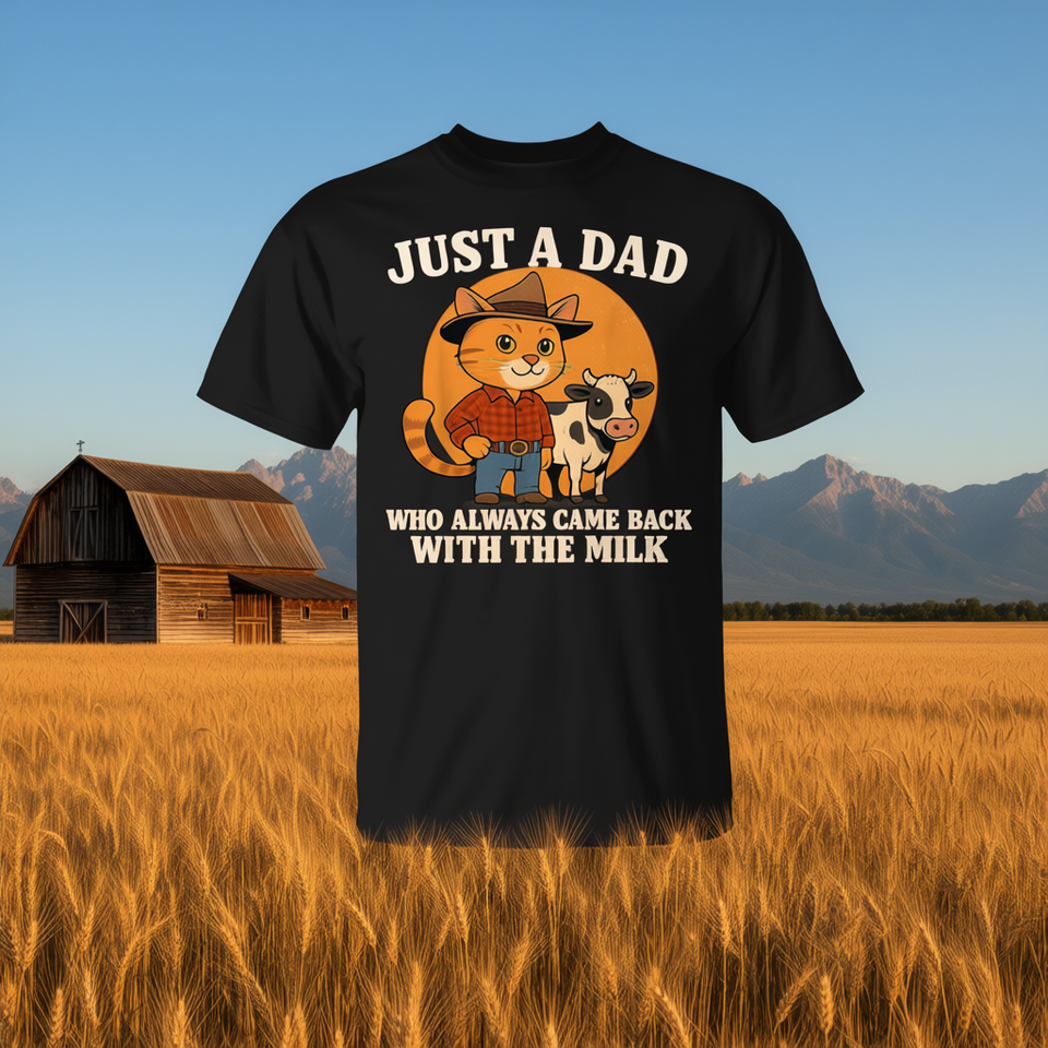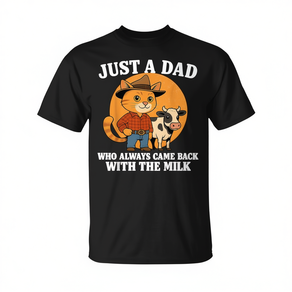 Western Cowboy Cat: Semplicemente un papà che è tornato con il latte - T-shirt