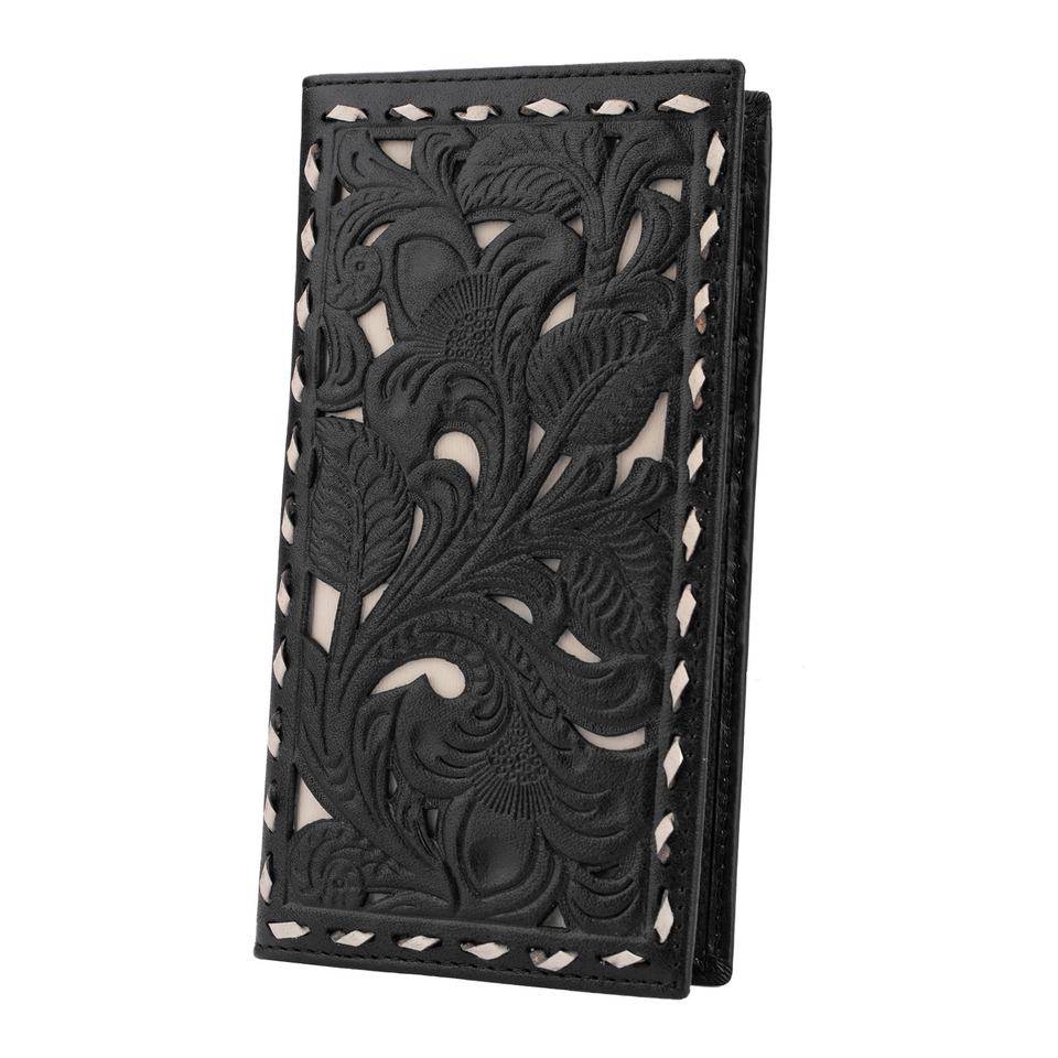 Western Cowgirl Floral Emboss Full Grain Leather Wallet for Women Cow Real Genuine Leather 12 Cards Holder Checkbook Wallet