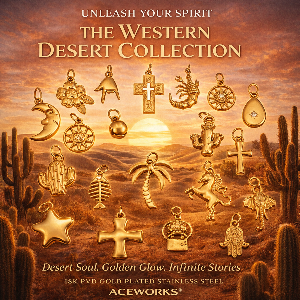 Western Desert Spiritual Talismans | 18K PVD Gold Plated Stainless Steel Charm Pendant for Jewelry Making | Waterproof & Durable