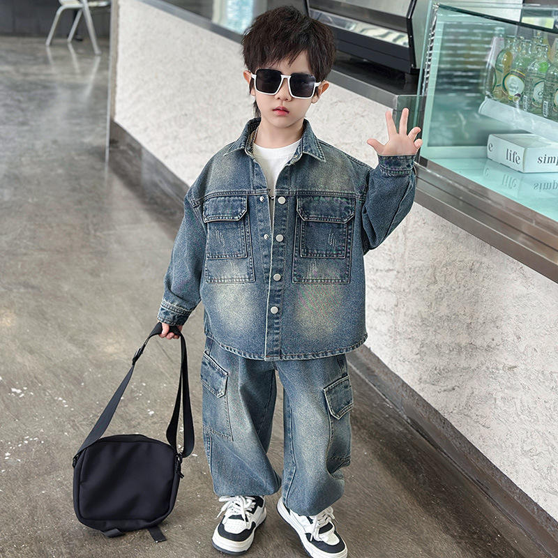 Western Style Casual Kids Clothing Sets Cool Long Sleeves Two Piece Set Denim Boys Clothes