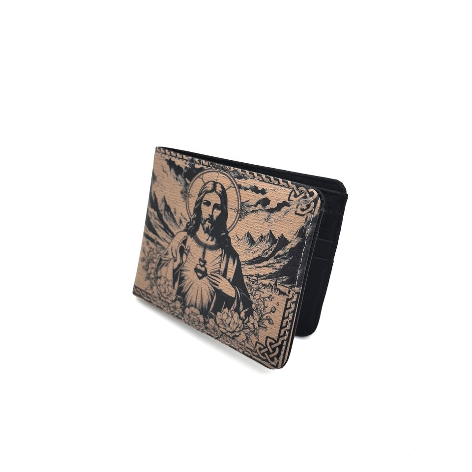Western Style Small Waterproof PU Leather Wallet Multi-card Slot Jesus Prayer Cross Sign Money Bag Custom Printed Available
