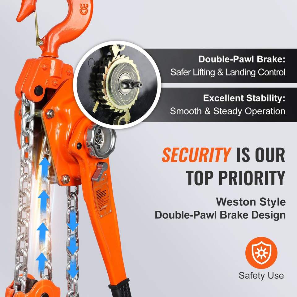 Paranco a Catena Manuale Weston da 6 Tonnellate (13200 Libbre) con Freno a Doppia Perno in Acciaio al Carbonio Zincato G80 e Cavo da 20 Piedi
