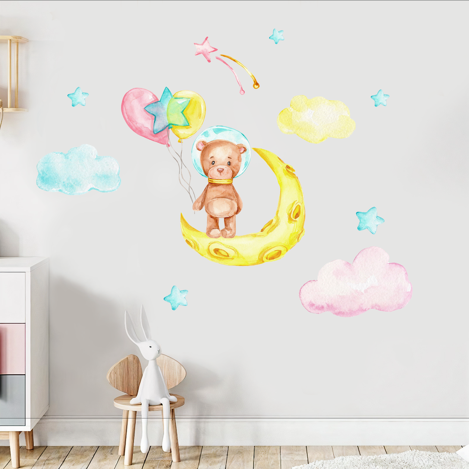 Whale and Bear Moon Balloon Stars Cloudy Wallpaper Home Decor Wall Mural for Living Room Bedroom Sofa Background Decor Sticker