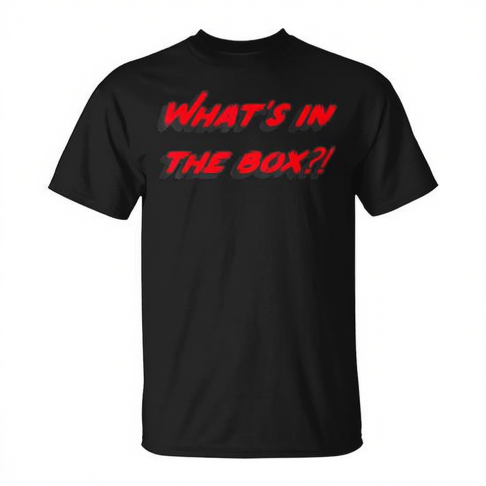Maglietta promozionale What's In The Box, nera, unisex, per adulti, a maniche corte, girocollo